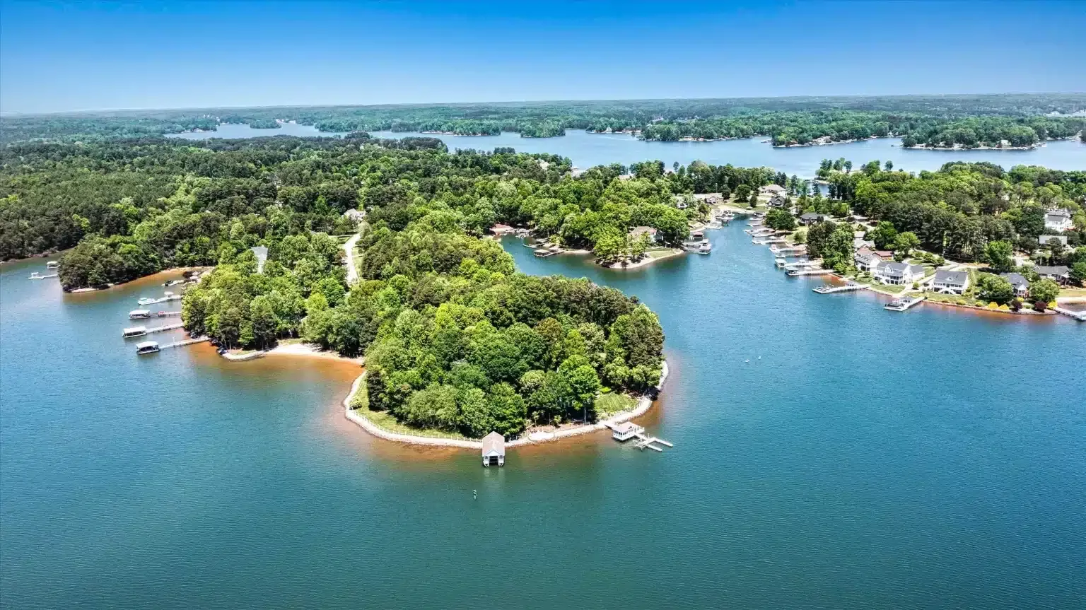 Nestled on a private 5-acre peninsula in Sherrills Ford, North Carolina, Carolina Hideaway offers an exclusive escape where luxury meets tranquility. Surrounded by over 1,200 feet of pristine Lake Norman shoreline, this secluded estate ensures complete privacy with no visible neighbors—providing an idyllic setting for relaxation and rejuvenation.